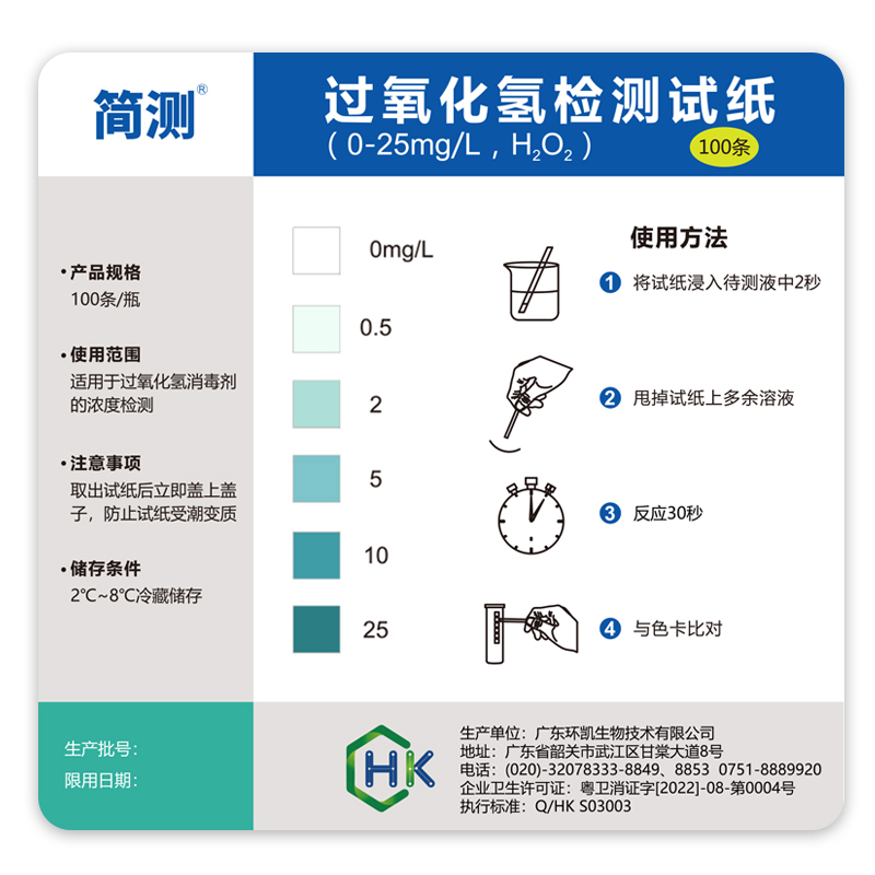 Usage: Detect Hydrogen Peroxide used as a disinfectant.