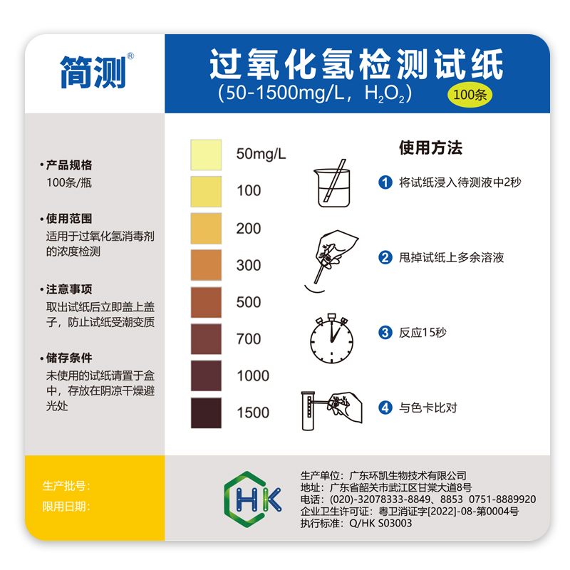 Usage: Detect Hydrogen Peroxide used as a disinfectant.